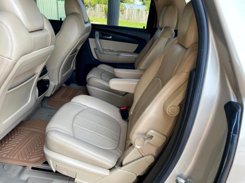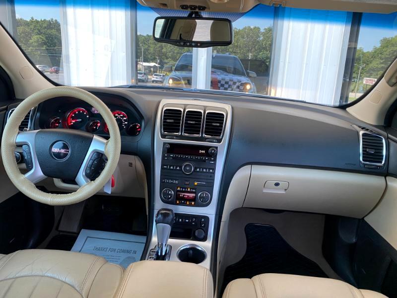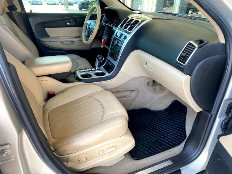 This is a beautiful 2011 GMC Acadia SLT, gold with tan leather interior, 147k, 6 cylinder, automatic, front wheel drive, power mirrors, power windows, power door locks, power steering wheel with audio controls, alloy wheels, am/fm cd stereo, side airbags, backup camera, dual air conditioning, tint, floor mats, 7 passenger seating, keyless entry, remote start, cruise control, dual sunroof, power hatch, memory, and dual power heated and cooled seats.