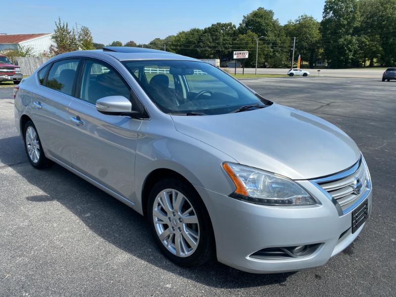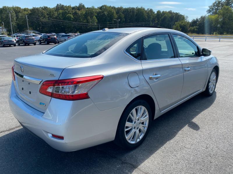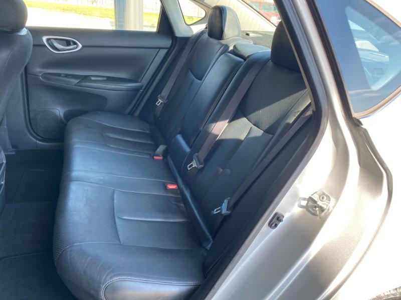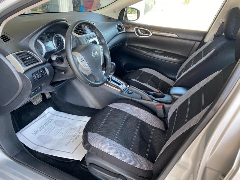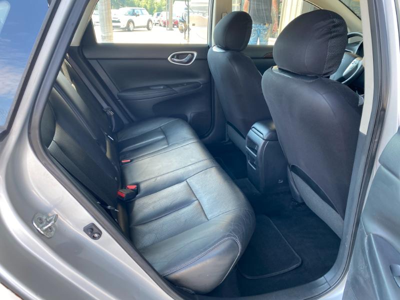 This is a nice 2014 Nissan Sentra SL, 159,000 miles, silver with black leather, 4 cylinder, automatic, navigation, backup camera, sunroof, alloy wheels, dual automatic climate control, air conditioning, power windows, power mirrors, leather power steering wheel with audio controls, tilt, tint, cruise, power door locks, am/fm stereo with cd, side airbags, smart key with keyless entry, bluetooth, heated seats, foglights, and floor mats.