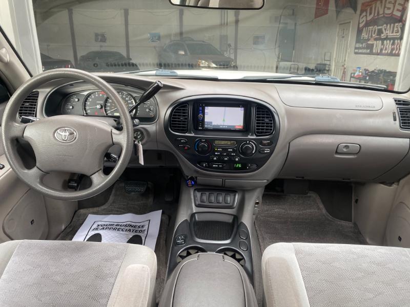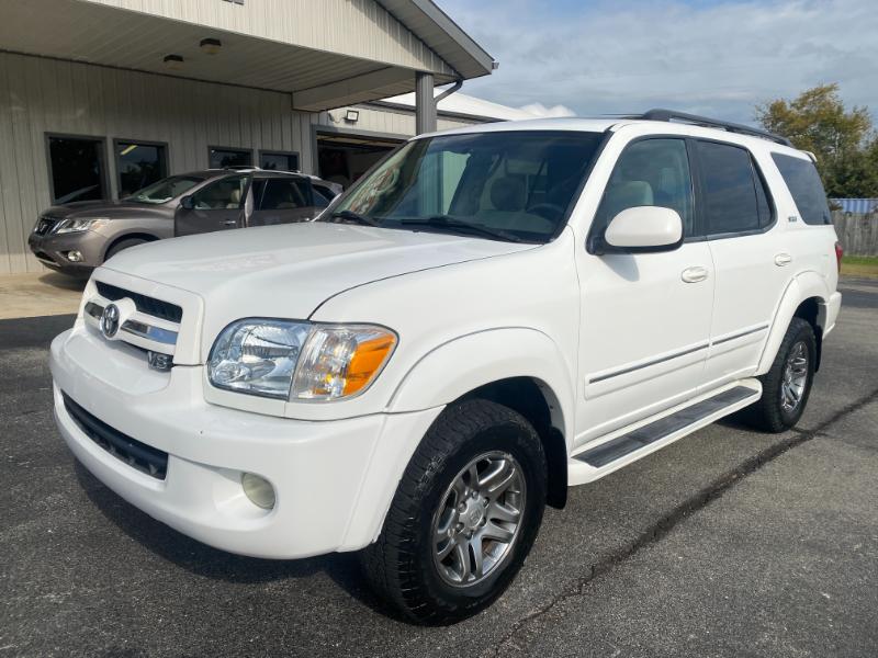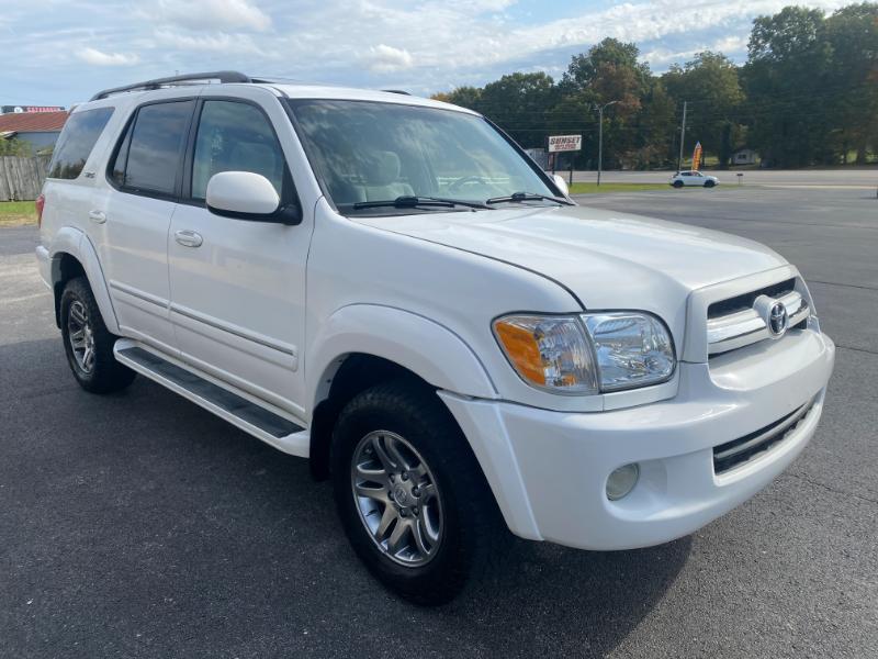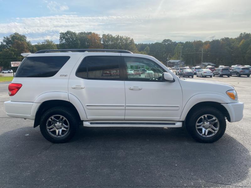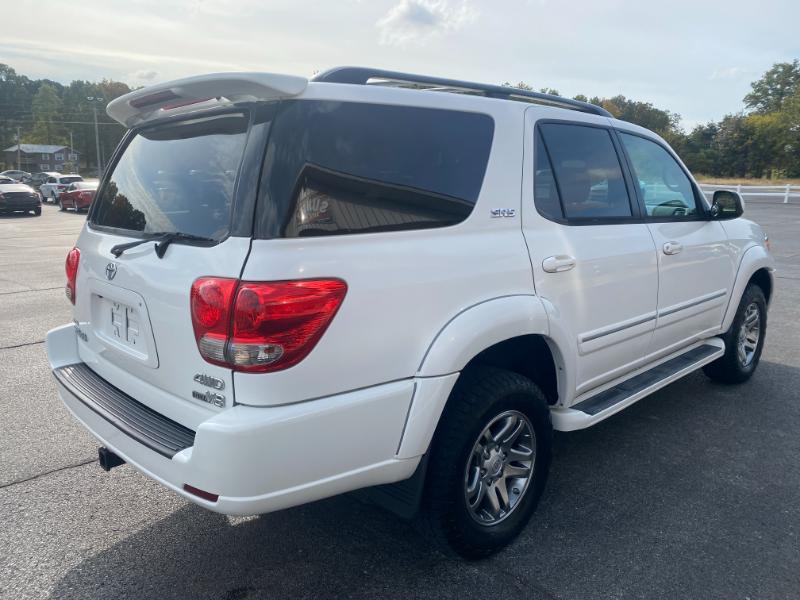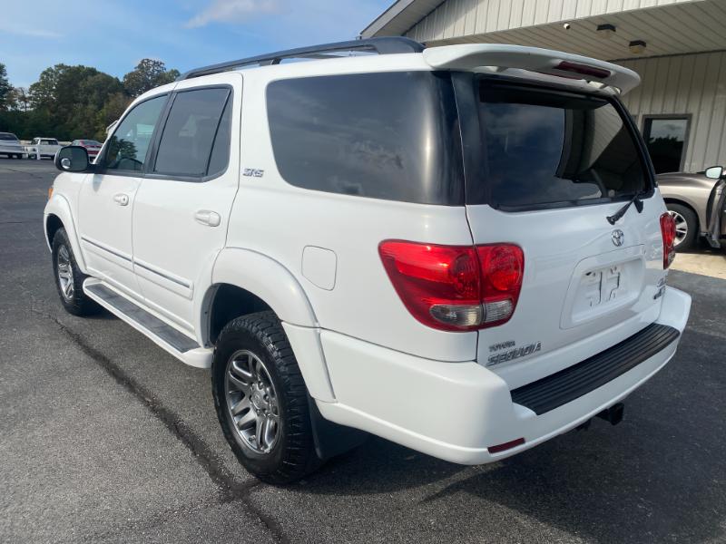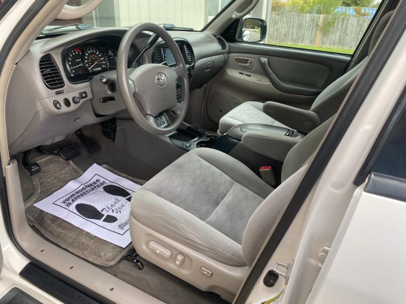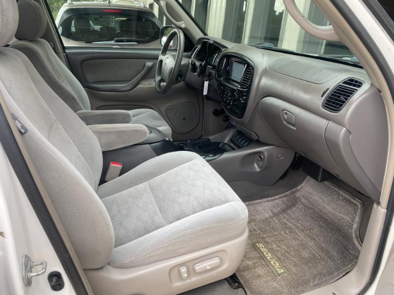 This is a very nice 2006 Toyota Sequoia SR5 4WD, 8 cylinder, automatic, white with gray cloth, 167k, interior features include navigation, backup camera, sunroof, rear tint, aftermarket stereo with remote, alloy wheels, power windows, power door locks, power mirrors, power steering, tilt, automatic climate control, dual power seats, spoiler, air conditioning, dual airbags, roof rack, running boards, tow package, flares, mudguards, 3 row seating, keyless entry, and floor mats.