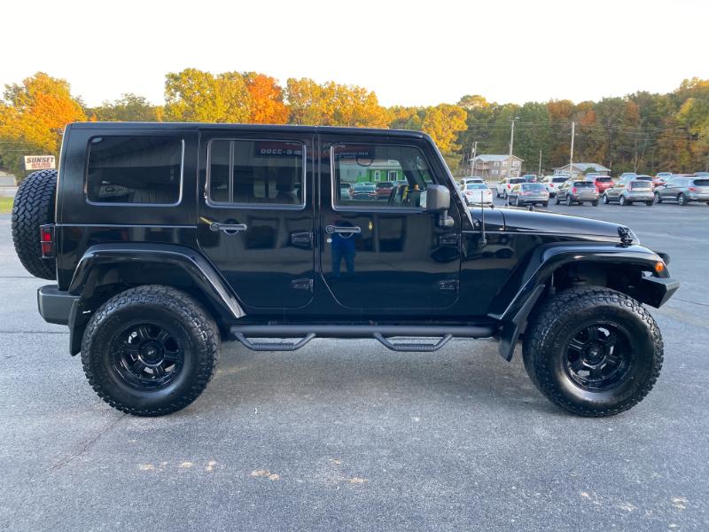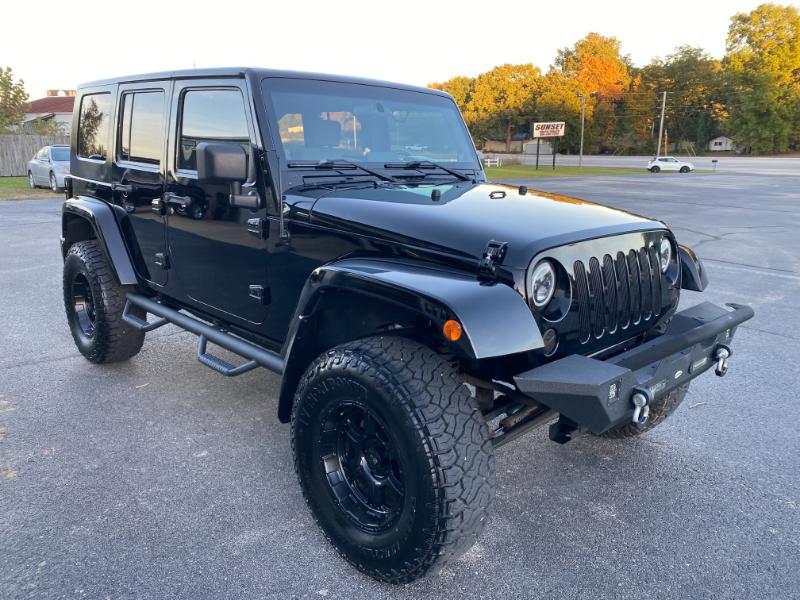 This is a gorgeous 2008 Jeep Wrangler Unlimited Sahara, 117k, 6 cylinder, black with gray cloth, 4 wheel drive, automatic, 17" custom alloy wheels, cruise, tilt, power windows, power steering, power locks, power mirrors, aftermarket stereo, dual airbags, air conditioning, ABS, keyless entry, led headlightss and foglights, tow package, tint, removable hard roof, side steps, taillight guards, custom front bumper, and floor mats.