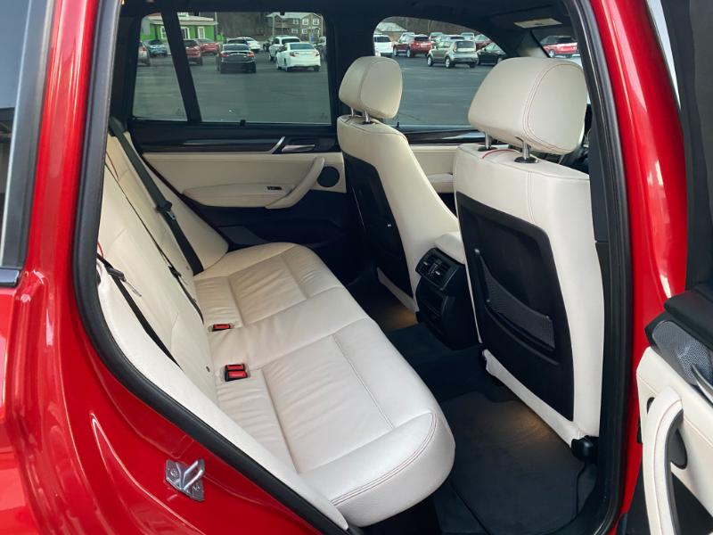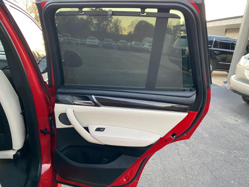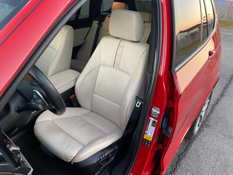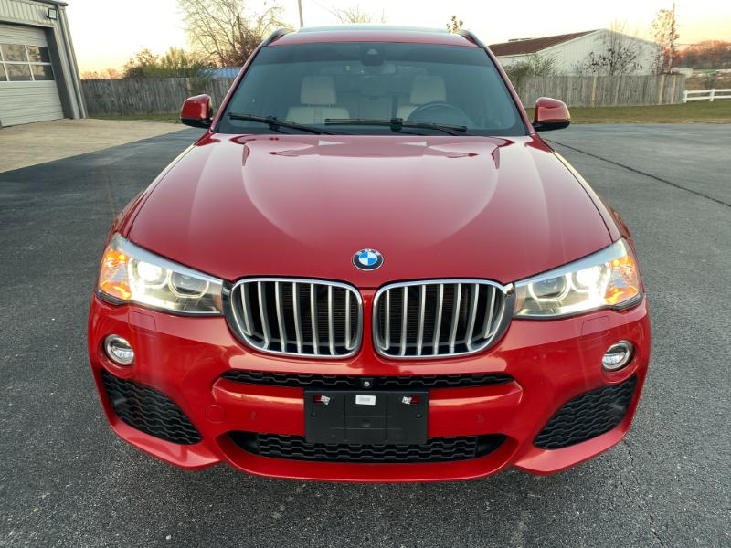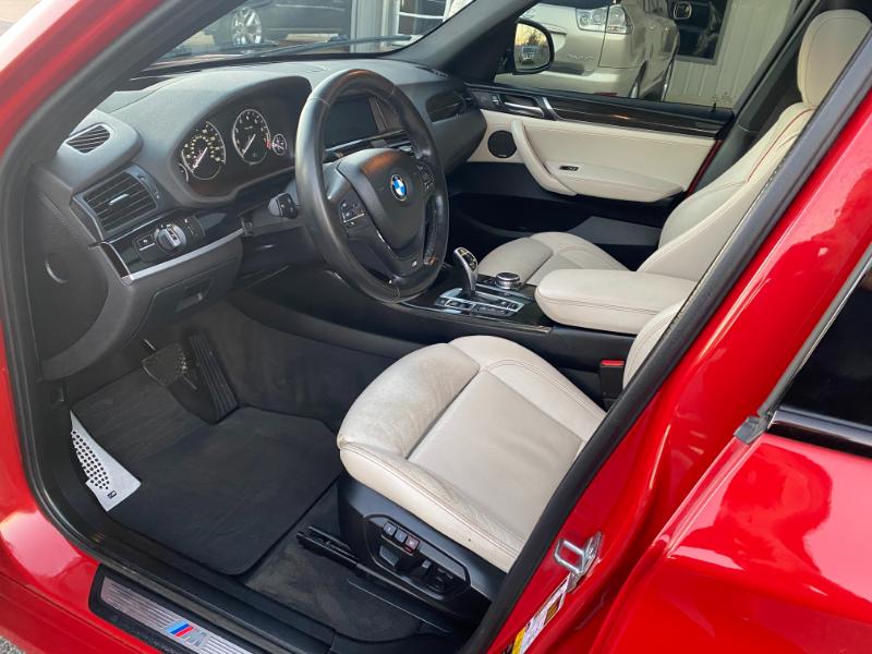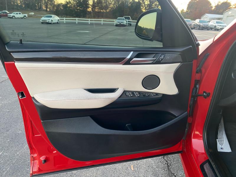 This is a beautiful 2016 BMW X3 M package, 160,000 miles, red with white leather, turbo 6 cylinder, all wheel drive, automatic with paddle shifters, navigation, backup camera, panoramic sunroof, alloy wheels, foglights, dual automatic climate control, air conditioning, home link, power windows, power folding mirrors, power hatch, leather power steering wheel with radio controls, tilt, cruise, power door locks, cd stereo with in dash cd changer, memory package, dual heated power seats, rear sunshades, smart key with keyless entry, tint, bluetooth, parking sensors, headsup display, halo headlights with washers, floor mats, front and side airbags.