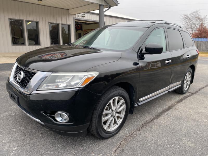 This is a very nice 2013 Nissan Pathfinder SL, 6 cylinder, 183k, black with black leather, 4 wheel drive, automatic, dual sunroof, parking sensors, alloy wheels, cruise, tilt, power windows, leather power steering with audio controls, power door locks, power mirrors, Bose stereo with aux input, dual airbags, dual climate control, memory package, power rear hatch, remote start, ABS, dual heated power seats, smart key with keyless entry, multi function computer, backup camera, rear tint, mud guards, 3 row seating, roof rack, fog lights, heated rear seats, rear climate control, tow package, and floor mats.